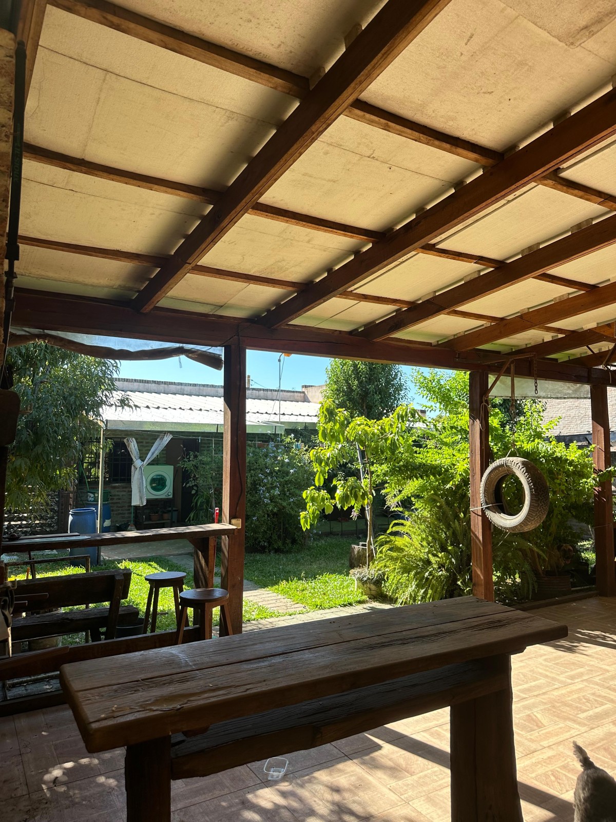 Cuenta con rejas al frente y entrada para vehículo, hermoso fondo cerrado con barbacoa al fondo y galpón.